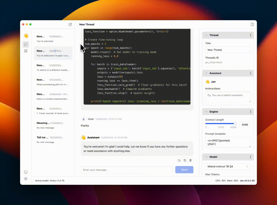 Realtime Video: Jan v0.4.3-nightly on a Mac M1, 16GB Sonoma 14