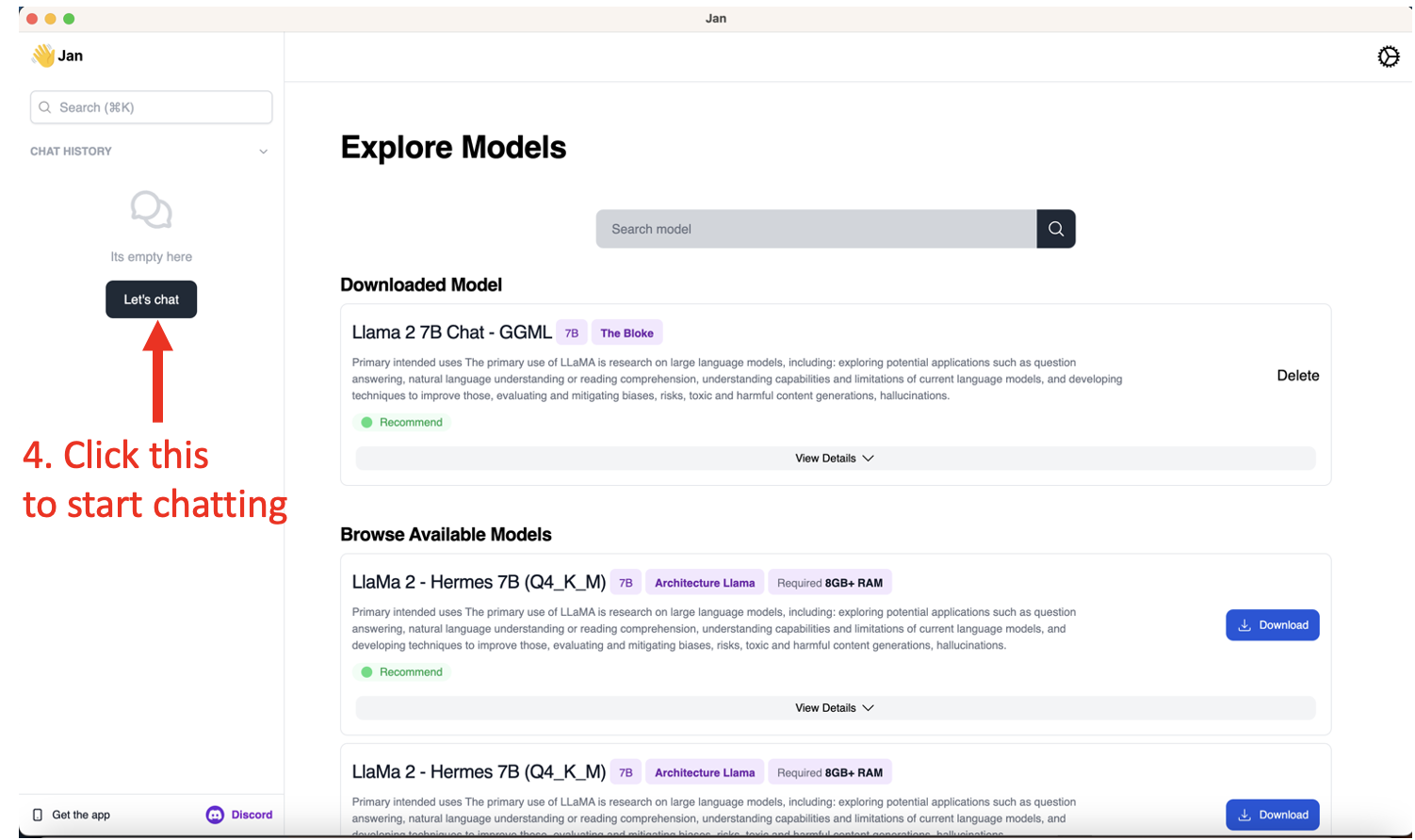 * hackathon: Refactor Jan into an Electron app * chore: correct NextJS export output path * chore: build electron app for all production targets * fix: correct assetPrefix for production build * chore: preferences shortcut * chore: refactor * chore: refactor into ts * feature/#52-compile-plugin-with-webpack * chore: introduce renderer <=> plugins <=> main invocation * chore: suppress errors - deprecate graphql & next-auth * chore: data plugin functions * add llm support Signed-off-by: James <james@jan.ai> * chore: update plugin * chore: introduce data-plugin * chore: plugin invokes main with args and synchronously * chore: install db plugin should setup db * feature: Data Driver Plugin - Load conversations and messages from data plugin * chore: store text message sent * chore: shared core services * feature: inference service * chore: conversations ordering * adding model management service Signed-off-by: James <james@jan.ai> * chore: strict type * feature: abstract plugin preferences * chore: abstract plugin preference * Revert "chore: strict type" This reverts commit 9be188d827a0b2e081e9e04b192c323799de5bb5. * chore: base-plugin styling * feature: create and delete conversation * chore: fix plugin search & clean messages * chore: typing indicator * chore: refactor useSendChatMessage * chore: persists inserted id to in-memory messages * chore: search conversation history * add delete and download model (#189) Signed-off-by: James <james@jan.ai> Co-authored-by: James <james@jan.ai> * chore: add empty state for conversation list * chore: prompt missing extension function & fix app crashes * chore: prompt user to install required plugins * chore: add launch background * chore: relaunch app on model downloaded * Jan app add installation instruction (#191) Co-authored-by: Hien To <> * Chore: rename folder web-client to app (#192) * Chore: rename folder web-client to app --------- Co-authored-by: Hien To <> * revert: add pre-install package * add progress for downloading model Signed-off-by: James <james@jan.ai> * feature: production bundle * add download progress Signed-off-by: James <james@jan.ai> * chore: add new chat function * fix: electron asar unpack modules & dynamic import * chore: fix unpack * chore: fix dev pack * Add instruction to build dmg file to README.md * init model dynamically Signed-off-by: James <james@jan.ai> --------- Signed-off-by: James <james@jan.ai> Co-authored-by: James <james@jan.ai> Co-authored-by: NamH <NamNh0122@gmail.com> Co-authored-by: hiento09 <136591877+hiento09@users.noreply.github.com> Co-authored-by: Hien To <>